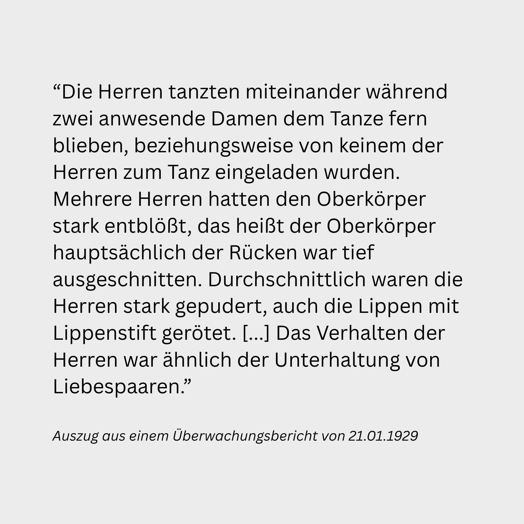 Zwar wurde weibliche Homosexualität auch während des „Dritten Reichs“ nicht strafrechtlich verfolgt, aber die lesbische Infrastruktur wurde ebenso wie die der Schwulen zerstört.