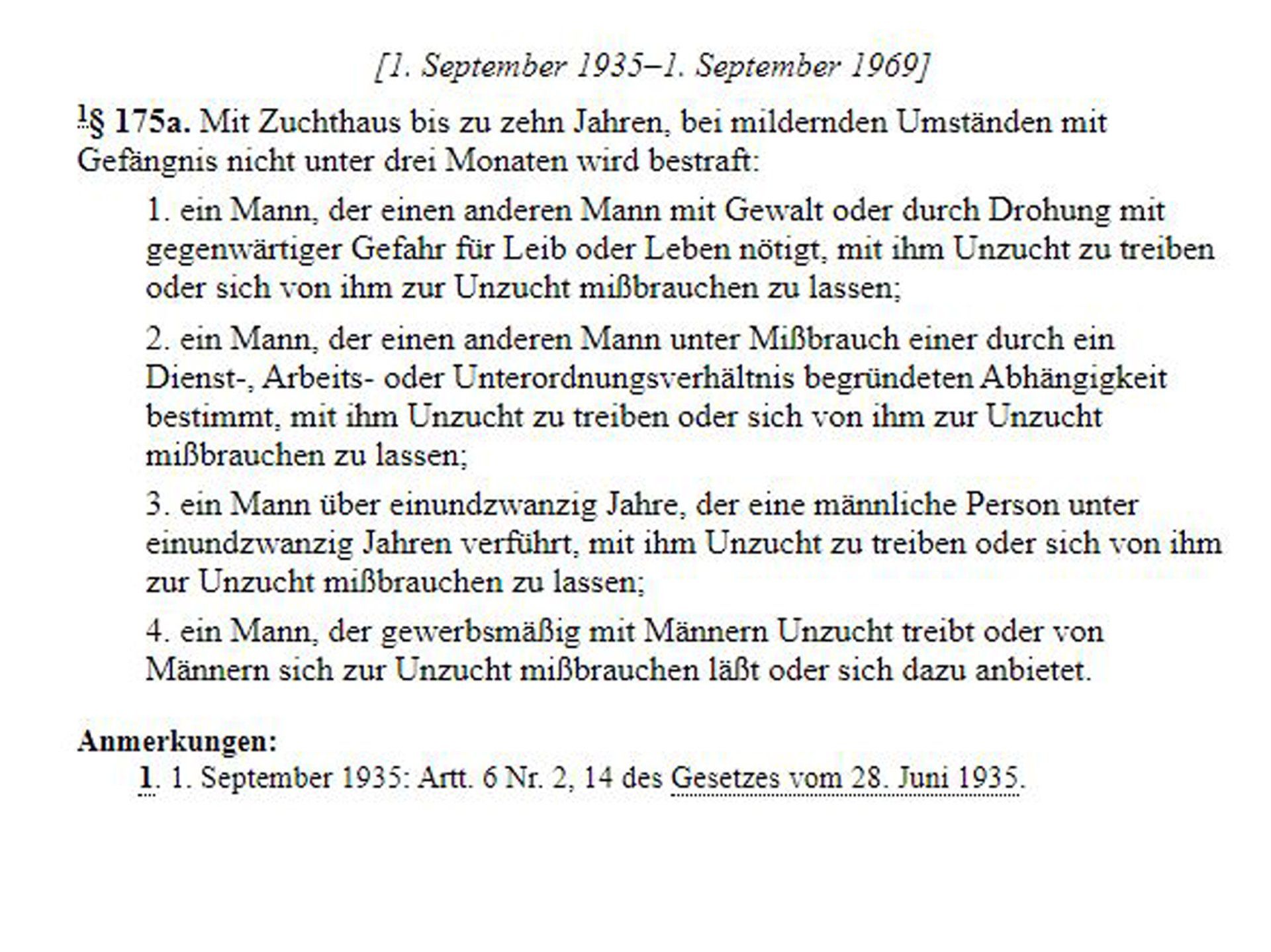„unzüchtigen“ Handlungen ausgeweitet. Der neu eingefügte § 175a bestimmte für