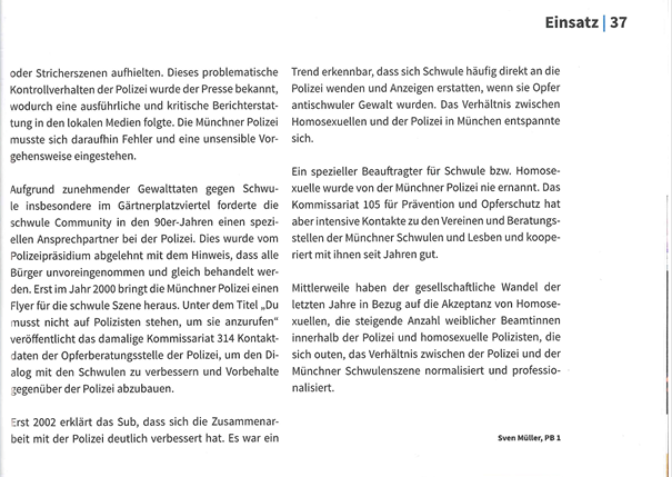 Auszug aus der Interpellation zur polizeilichen Diskriminierung von schwulen Männern – Analyse von Punkt 12 der Drucksache 14/3794 des Bayerischen Landtags